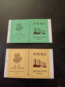 全新未使用火花卡标《中国北京新侨饭店 火花(绿、黄)》2枚,北京火柴厂出品,9.8×5.6