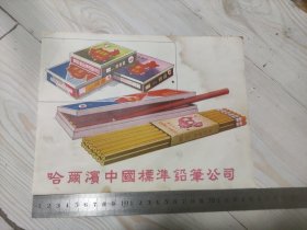 哈尔滨中国标准铅笔公司 成立于1949年 前身是公私合营铅笔工厂 1956年改名为地方国营哈尔滨中国标准铅笔公司。这个应该是1949年一1956年之前的商标广告 彩色漂亮!大气!网上孤品!珍贵珍稀!罕见!