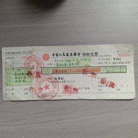 中国人民建设银行转帐支票