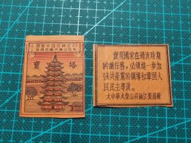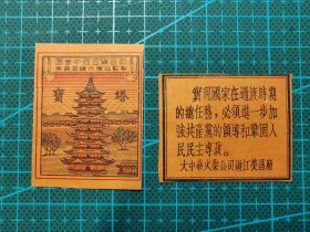 故纸堆1659 火花 宝塔 大中华火柴公司镇江荧昌厂 国营中国百货公司无锡采购供应站监制 1对2枚