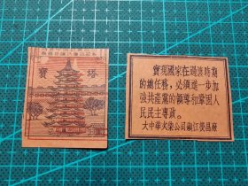 故纸堆1658 火花 宝塔 大中华火柴公司镇江荧昌厂 国营中国百货公司无锡采购供应站监制 1对2枚