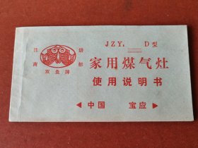 煤气灶说明书。中国宝应。双鱼牌家用煤气灶