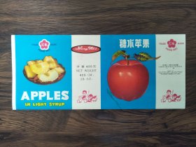 70年代中国粮油食品进出口公司监制大连红小兵画面糖水苹果商标