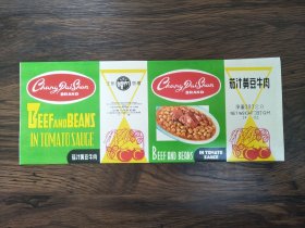 70年代中国粮油食品进出口公司监制大连红小兵画面茄汁黄豆牛肉商标