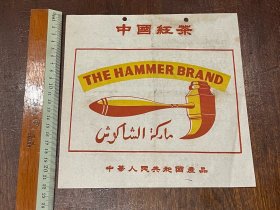 上海茶叶进出口实物资料:中、英、阿文中国红茶锤子牌商标 背面为1964年上海市茶叶进出口公司职工生活困难临时特殊补助申请书(尺寸:22*22cm)