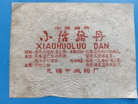 中国药材公司山西省大同批发站,小儿回春丹说明书,14.5*13.5厘米