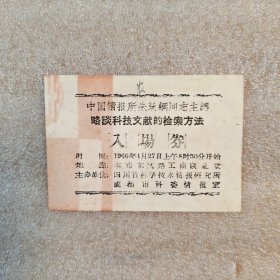 中国情报所朱跃纲同志主讲略谈科技文献的检索方法入场券