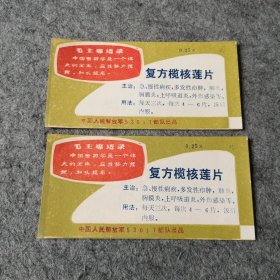 早期老药标商标:复方榄核莲片 有毛主席语录 2张合售.