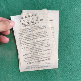 老药标说明书:毛主席语录(狄戈辛片)中国医药工业公司上海第七制药厂