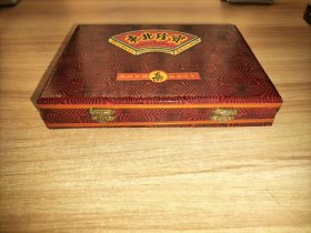 空盒子一个:东北珍宝 中国长白山名贵补品 高级补品 益寿延年 福如东海常流水 寿比南山不老松 里面有2张纸质产品介绍(关东四珍:长白山人参 不老草 灵芝 梅花鹿茸片)。