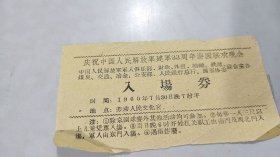 庆祝中国人民解放军建军33周年游园联欢晚会,入场券(北京劳动人民文化馆)(解放军,国家体委,公安部,铁道,财政部人民银行等11个部门联合举办)(1960年7月30日晚7点半)(印有4个注意事项)