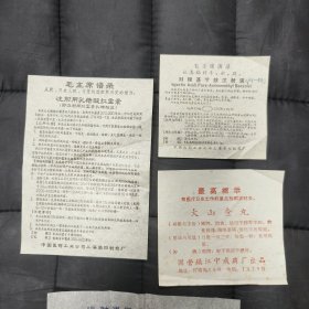 六十年代 药标(共3枚): 毛主席语录、最高指示、中国医药工业公司上海、国营镇江中成药厂 —— 另赠一枚(好品包邮)!