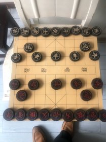 中国象棋,白蜡木木象棋。辽宁省清原满族自治县顺象棋厂,非常少见尺寸6厘米 厚1.8厘米。完整无裂 带塑料棋盘、实物图片