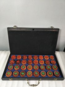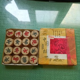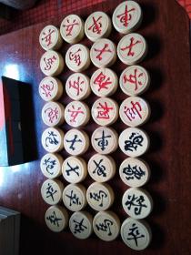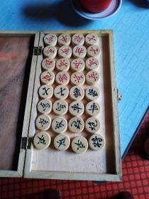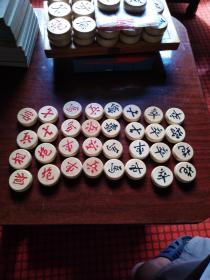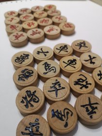 实木中国象棋(32枚全 ) 鼓型 纽扣大小 钓鱼牌