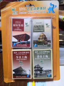 中国2010年上海世博会特许商品/城市,让生活更美好 知识系列收藏扑克牌 :《展馆集锦》《历届集锦》《今日上海》《昔日上海》全套四副合售@---1