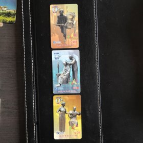 中国电信北京市电信公司IP电话卡老北京风情雕塑系列,拉洋车、剃头、评弹,一套四张缺第一张,收藏卡,正常规格卡约8.5×5.5厘米,三张的价不拆开卖,看图