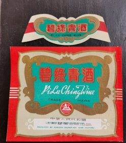 七十年代老酒标,中国名酒中华人民共和国江苏双沟酒厂(碧绿青酒)注册商标(山河)