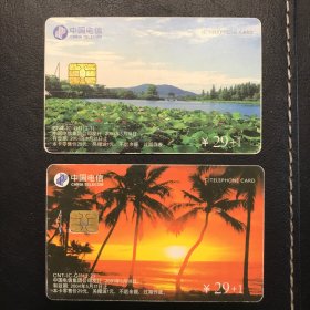 中国电信 CNT-IC-G11 一套两卡全,浙江杭、宁、温电话号码升8位、海南电话号码升8位,收藏卡,正常规格卡约8.5×5.5厘米,标的是一套两张的价