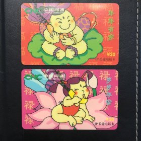 中国网通年年有余、岁岁平安IP长途电话卡,CNC. J2一套两张全,收藏卡,正常规格卡约8.5×5.5厘米,标的是一套两张的价