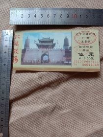辽宁北镇鼓楼:门票(此门票为阜新林业局机关招待所使用…并在背面盖有阜新市林业局机关招待所购入的财务专用章一枚, 并且在正反两面分别盖有保险协会印章及中国平安人寿保险股份有限公司印章各一枚,详看如图较少见)包邮价具有收藏价值。