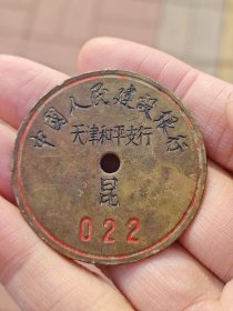 中国人民建设银行,天津市和平支行。铜牌,号码牌,徽章,品相如图保真包老。
