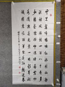 B18449号书法 杜牧 江南春 朱熹 春日138×68 作者:刘祥德 笔名刘丰粟 1933年9月生 安徽省亳州市人 大专文化 人保局退休干部 县委政府办公室文书 中国安徽汤都书画院书法师 国际书法名家交流协会理事 亳州市书法协会 中国当代书画协会会员 千里莺啼绿映红,水村山郭酒旗风。南朝四百八十寺,多少楼台烟雨中。