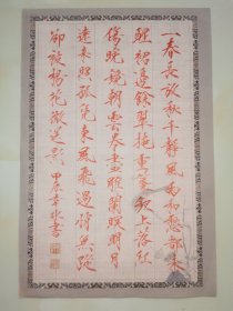 韦冰硃笔 瘦金体楷书 张惠言《玉楼春》 “一春长放秋千静,风雨和愁都未醒。裙边余翠掩重帘,钗上落红伤晚镜。 朝云卷尽雕阑暝,明月还来照孤凭。东风飞过悄无踪,却被杨花微送影” 19.2×29厘米(宋锦云雀 微喷蜡染宣纸仿古半生熟小楷书法专用纸)