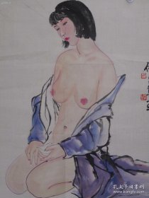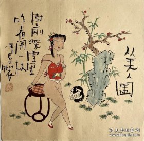 新文人水墨诗画燔玉美人图四十:冰骨裁琼, 雪魄轻笼一缕云。小红兜影褪还亲,漾香痕。 檀唇未启春先露,玉股微红展绣裀。今夜冰清都碎也,为郎亲。