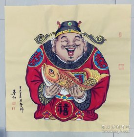 喜,喜神,福禄寿喜财,宋春红老师的真人真迹纯手绘作品,假一赔万,终身保真,支持第三方鉴定,老师的人物画的非常细,惟妙惟肖,整个构图非常大气,漂亮,看开脸,看手,看构图动作这几个地方画的非常细。尺寸为70米x70公分,四尺斗方的,家里客厅,进门口,玄关,茶室,书房,中堂都可悬挂,不挑地方,寓意非常好的一幅画,朋友结婚,家有喜事,乔迁新居,送人送礼再好不过了。