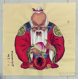 寿,寿星,福禄寿喜财,宋春红老师的真人真迹纯手绘作品,假一赔万,终身保真,支持第三方鉴定,老师的人物画的非常细,惟妙惟肖,整个构图非常大气,漂亮,看开脸,看手,看构图动作这几个地方画的非常细。尺寸为70米x70公分,四尺斗方的,家里客厅,进门口,玄关,茶室,书房,中堂都可悬挂,不挑地方,寓意非常好的一幅画,朋友结婚,家有喜事,乔迁新居,送人送礼再好不过了。