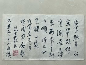 B17840号书法 程颢 秋日偶成 100×66cm 作者:卢用和 贵州省 凉都 六盘水 中国书画家协会理事,中华书画学会理事,华夏夕阳红书画研究院院士,其作品曾多次参加国际国内书画大展并屡获殊荣,还远赴亚欧地区国家参展,并被主办方编辑出版和永久收藏。 闲来无事不从容,睡觉东窗日已红。万物静观皆自得,四时佳兴与人同。道通天地有形外,思入风云变态中。富贵不淫贫贱乐,男儿到此是豪雄。