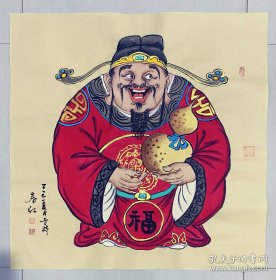 福,福神,福禄寿喜财,宋春红老师的真人真迹纯手绘作品,假一赔万,终身保真,支持第三方鉴定,老师的人物画的非常细,惟妙惟肖,整个构图非常大气,漂亮,看开脸,看手,看构图动作这几个地方画的非常细。尺寸为70米x70公分,四尺斗方的,家里客厅,进门口,玄关,茶室,书房,中堂都可悬挂,不挑地方,寓意非常好的一幅画,朋友结婚,家有喜事,乔迁新居,送人送礼再好不过了。