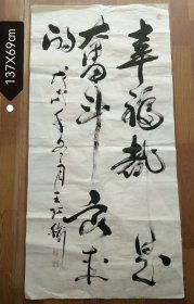 王红胜行书作品,“幸福都是奋斗出来的” “戊戌年冬月 王红胜”,钤“缘”“外师造化”“王红胜印”三印,四尺整张,喜欢的拍去。不常在线,有任何问题欢迎垂询13965407316.谢谢!