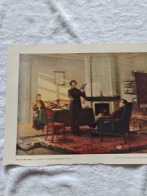 铜版印刷油画小品(世界名油画:音乐家,两面都有人)民国原版印刷油画小品 民国画 (画上编号 (比16开大,你八开小)标价为一张的价格,彩色铜板印刷油画