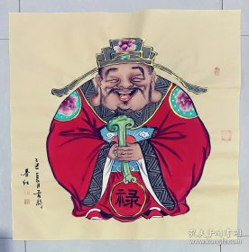 禄,禄星,福禄寿喜财,宋春红老师的真人真迹纯手绘作品,假一赔万,终身保真,支持第三方鉴定,老师的人物画的非常细,惟妙惟肖,整个构图非常大气,漂亮,看开脸,看手,看构图动作这几个地方画的非常细。尺寸为70米x70公分,四尺斗方的,家里客厅,进门口,玄关,茶室,书房,中堂都可悬挂,不挑地方,寓意非常好的一幅画,朋友结婚,家有喜事,乔迁新居,送人送礼再好不过了。